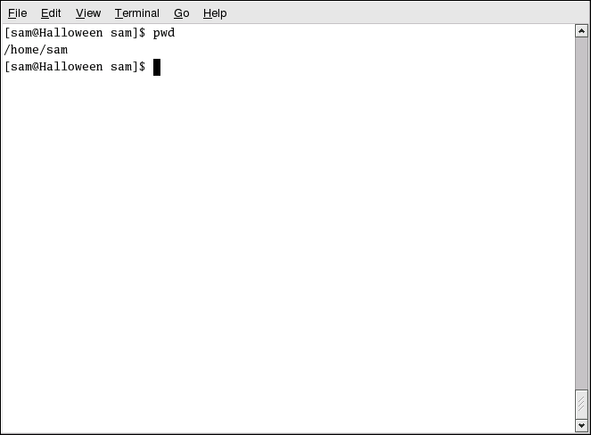 This example shows that you are in the user sam's directory, which is in the /home/ directory.