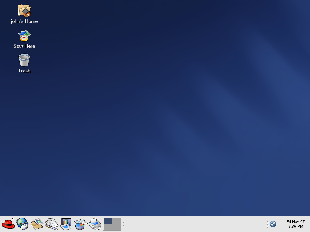 When you installed Red Hat Enterprise Linux you had the opportunity to install a graphical environment. Once you start the X Window System, you will find a graphical interface known as a desktop similar to Figure 1-11.